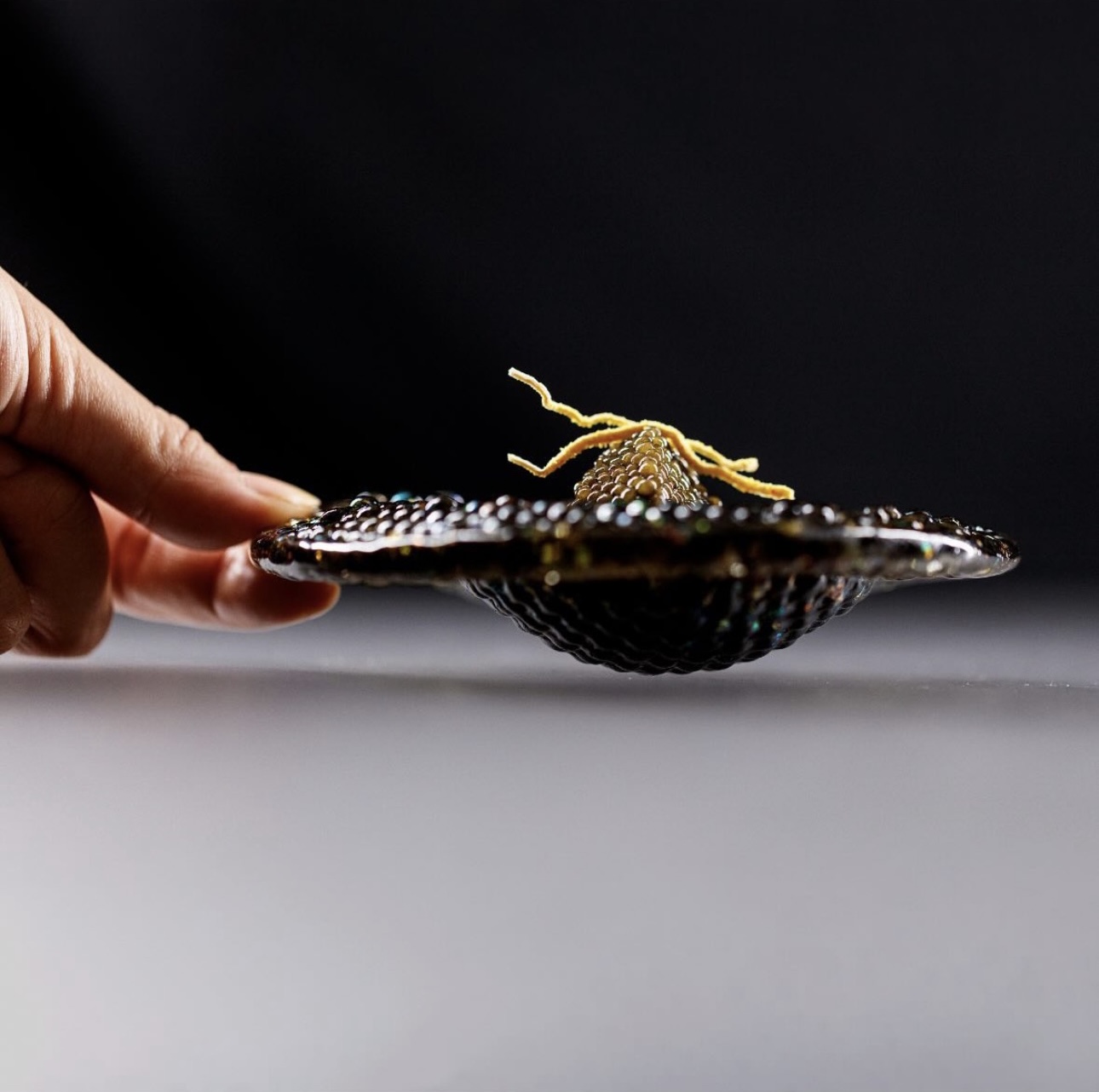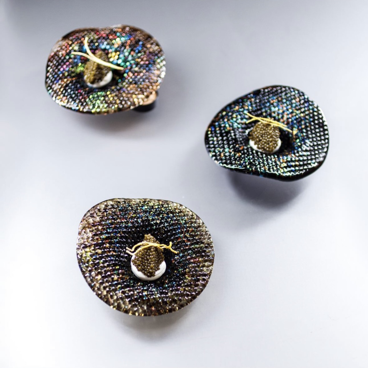April 25, 2024Handmade textured cast glass dishes with sparkly dichroic accents. Perfect to use as unique home decor or for holding jelwery/keys. Designed by Arvin Makhsous
